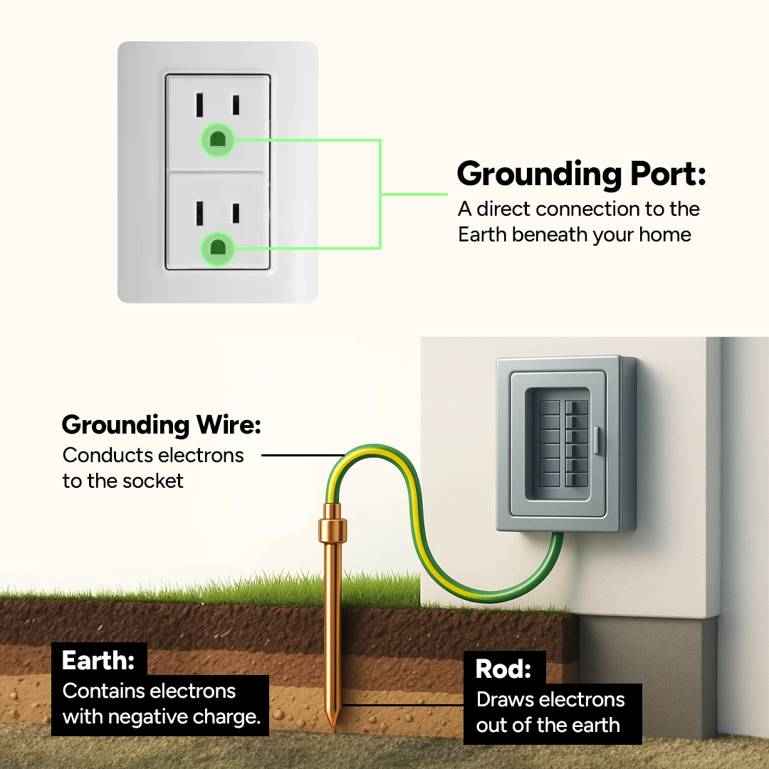 Ever wonder what the third (bottom) hole in your power outlet is for? That’s the grounding port—a direct connection to the Earth beneath your home.